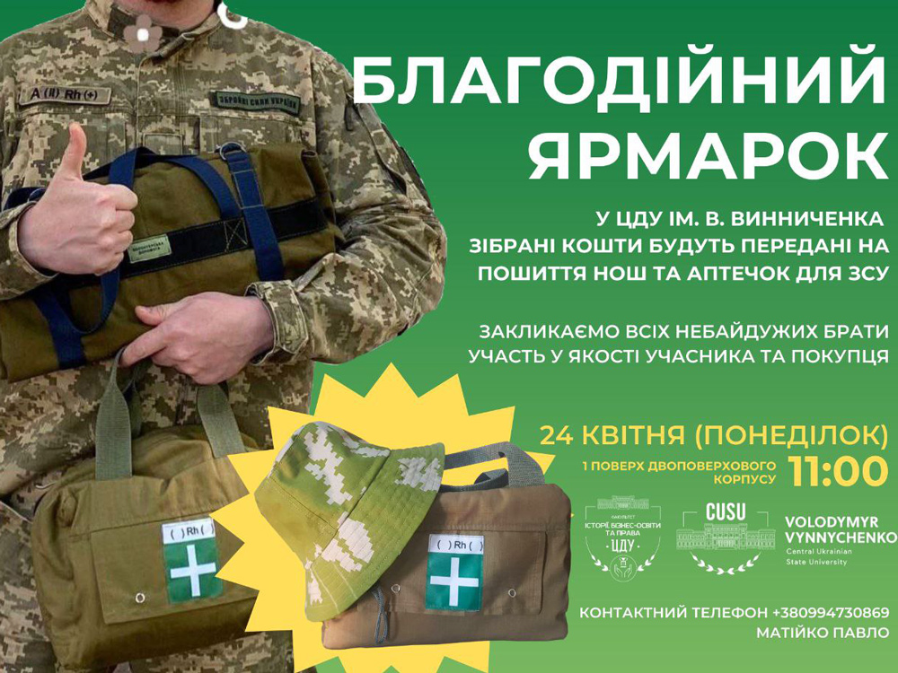 Черговий благодійний захід на підтримку Збройних сил України пройшов на базі ЦДУ імені Володимира Винниченка.