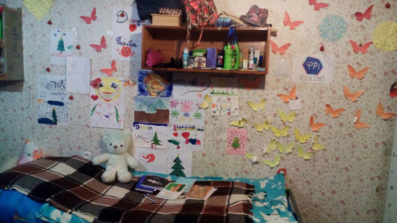 Ми живемо в гуртожитку другий рік. Кімната розрахована на трьох осіб , але нам місця вистачає. Сусідство склалося чудово, на щастя, конфліктів не маємо. Кожна створила “свій” затишок на стіні біля ліжка (плакати, малюнки, роздруківки, вирізки з журналів та картини).