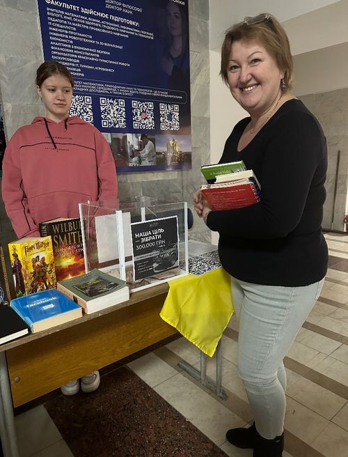 На ярмарку купували книги і/або передавали свої донати на збори: для 3-ої ОШБ, де служить наш студент Ілля Медведєв, та для підрозділу, де служить тато нашої студентки Даші Колос.