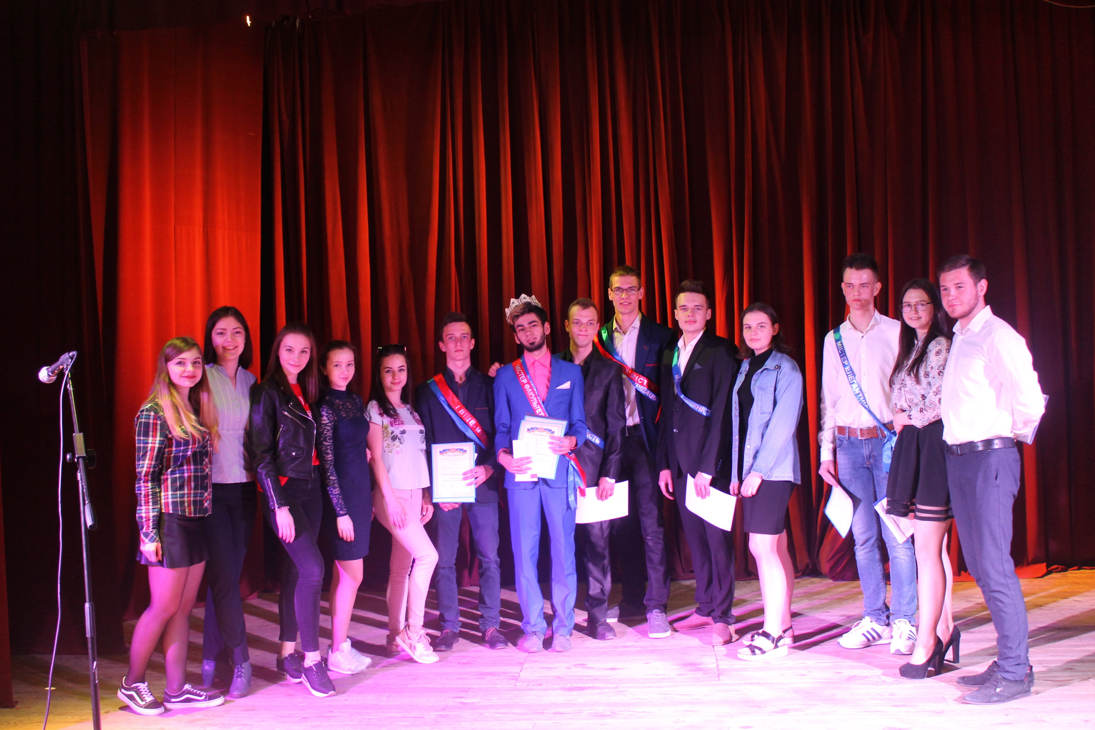 Цьогоріч участь взяли 6 найсміливіших хлопців нашого факультету. Спочатку було дуже важко їх вмовити, але потім, коли почалася підготовка, постійні репетиції, постановки дефіле, танців… Хлопці настільки здружилися, що конкуренція зовсім не відчувалася. Із суперників вони перетворилися на одну велику дружню родину. І навіть якщо хтось із хлопців пропустив репетицію – вони не хвилювалися, адже знали, що друзі-містери допоможуть все наздогнати.