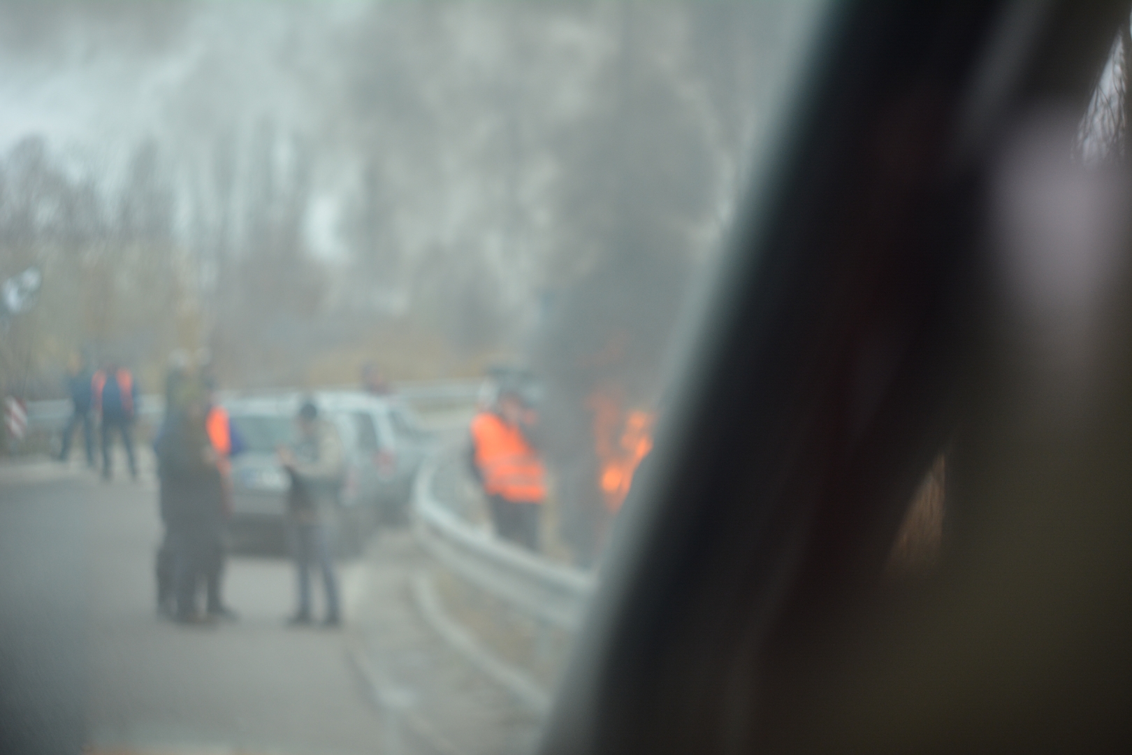 Усі наяскравіші види вбачаєш, коли дорослішаєш, можливо просто через те, що очі відкриваються ширше. Туман тяжів до м'якої поверхні засніженої землі, а нас хилило в сон. Повернуло до реальності бастування смілян, які перекрили дорогу несправедливості і машинам, зокрема нашій, що змусило нас зробити об'їзд, однак легка комедія про ямайськіх бобслеїстів зігрівала холодною дорогою. Аж раптом зустріли вже обухівських мітингувальників-власників євроблях. Україна в язвах. Свіжа скоринка тьмяного льоду віддзеркалює туман...