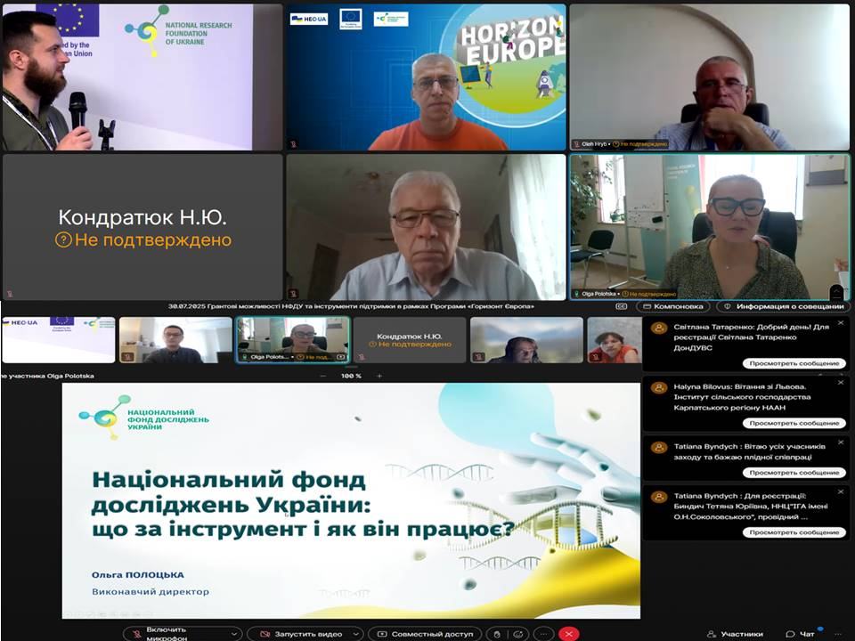 Захід, організований Національним фондом досліджень України у гібридному форматі, об’єднав науковців, представників університетів, дослідницьких установ і органів влади задля популяризації інструментів підтримки наукових ініціатив, а також ефективної участі українських установ у міжнародних програмах.