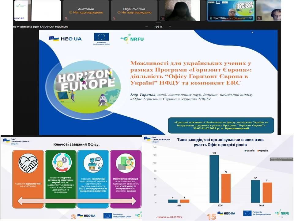30–31 липня 2025 року в місті Кропивницькому відбувся дводенний інформаційний захід «Грантові можливості Національного фонду досліджень України та інструменти підтримки в рамках Програми «Горизонт Європа».