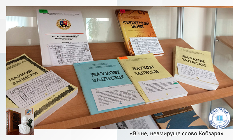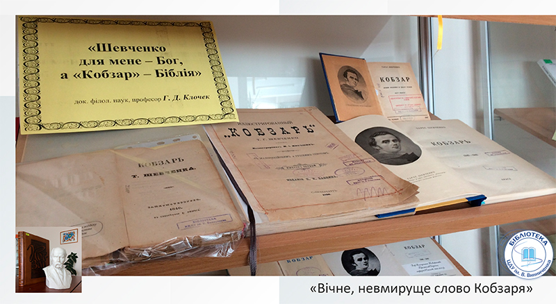 У рамках святкування дня народження Т. Г. Шевченка з 4 березня в читальному залі філологічних дисциплін презентується виставка однієї книги «Кобзар» Т. Г. Шевченка. Виставка яка відображає не тільки значення цієї книги для української культури, а й наголошує на тому, як важливо зберігати національну культуру та спадщину для майбутніх поколінь. Крім того, вона надає можливість детально дізнатись про життя та творчість Т. Г. Шевченка, а також про те, як він вплинув на українську літературу та культуру загалом.