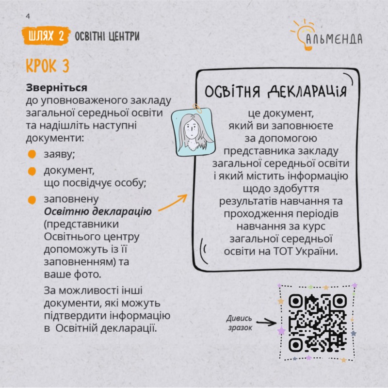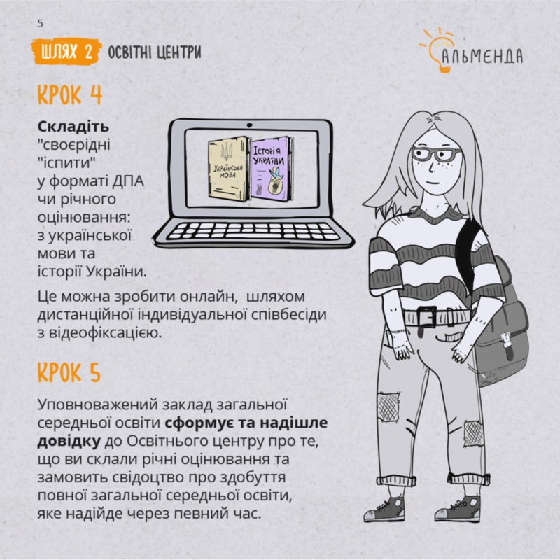 - довідку про успішне проходження річного оцінювання та державної підсумкової атестації, зокрема, освітній центр забезпечує можливість пройти підсумкову атестацію у Комунальному закладі "Ліцей "Максимум" Кропивницької міської ради" (онлайн).